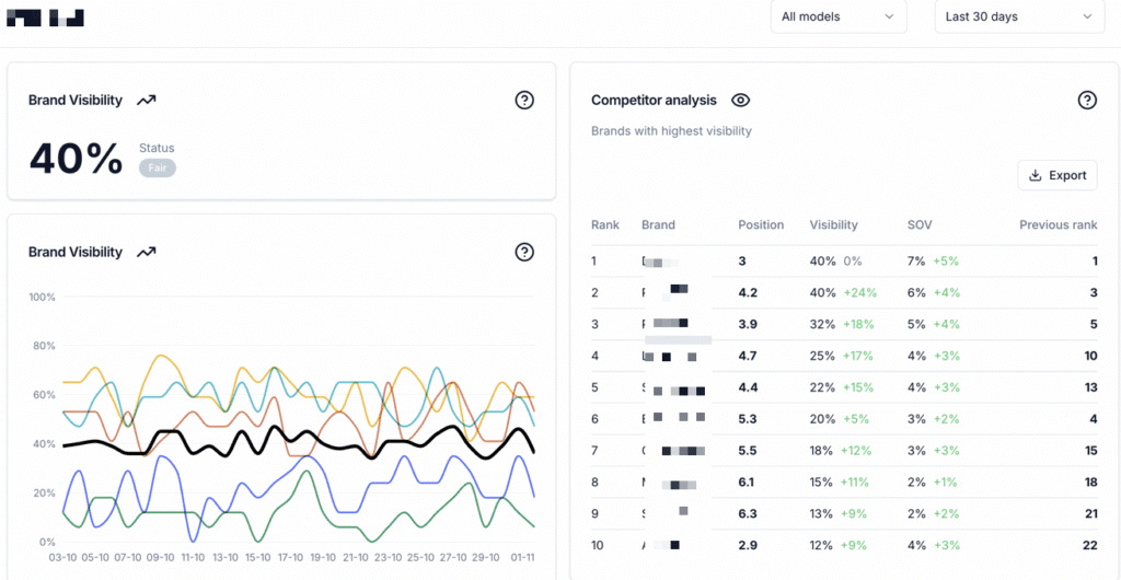 Dlatego AI SEO = nowy klucz do widoczności. Zadbaj, by modele AI rozumiały Twoje treści, uznały Cię za wiarygodne źródło i polecały Twoją markę użytkownikom. Widoczność marki jest podstawowym elementem jaki jest brany pod uwagę w przygotowaniu treści wyświetlanych w chatboatch (LLM’ach).